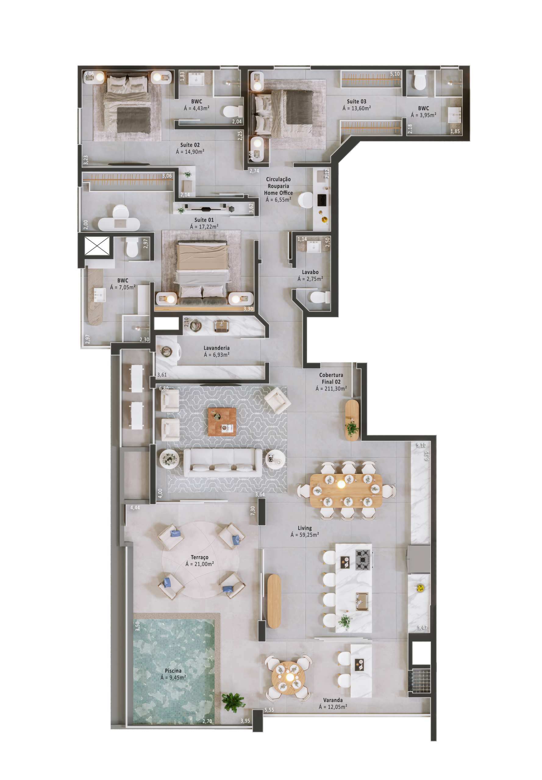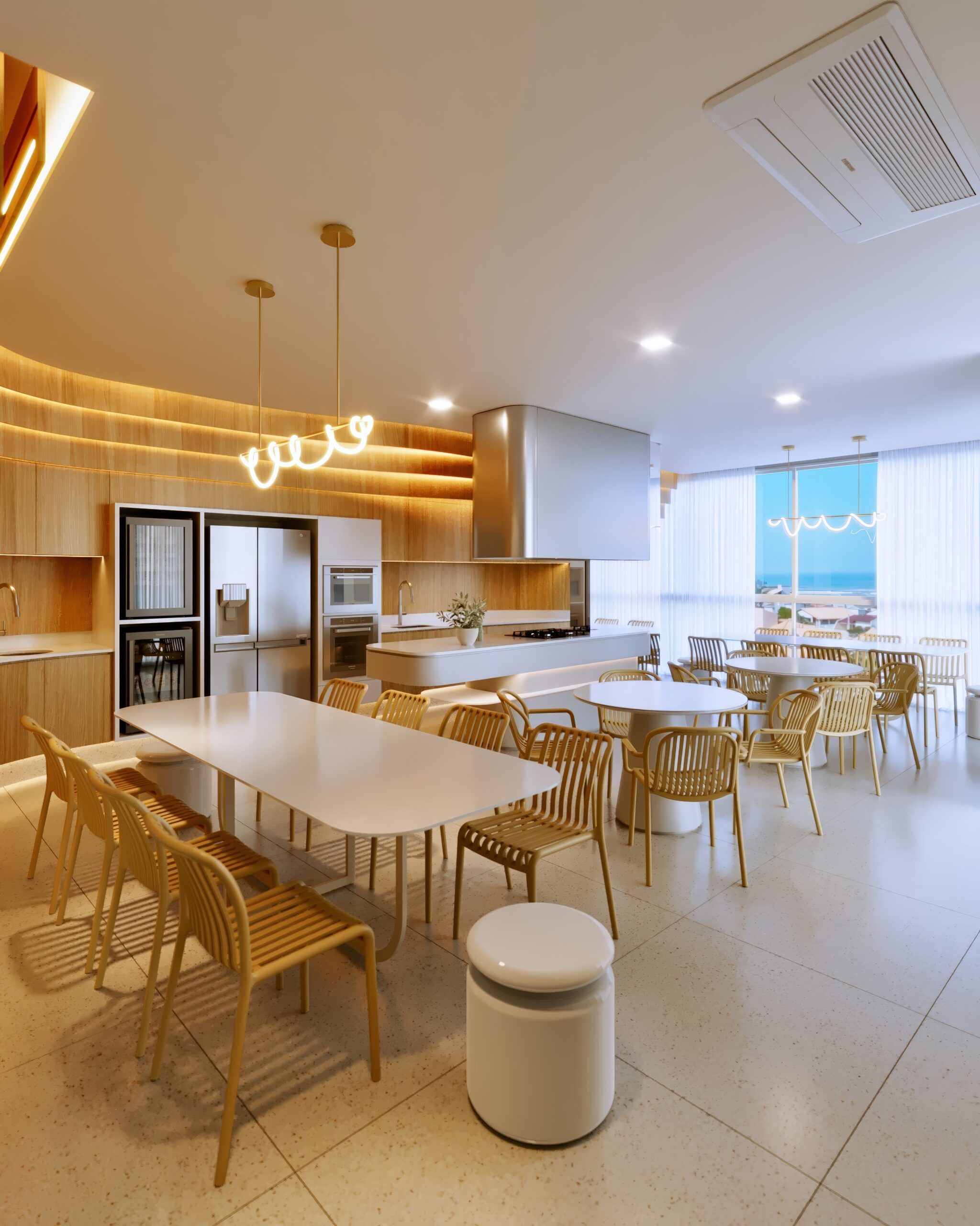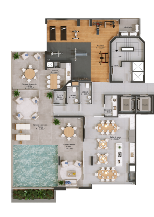 Áreas de lazer mobiliadas, decoradas e climatizadas
