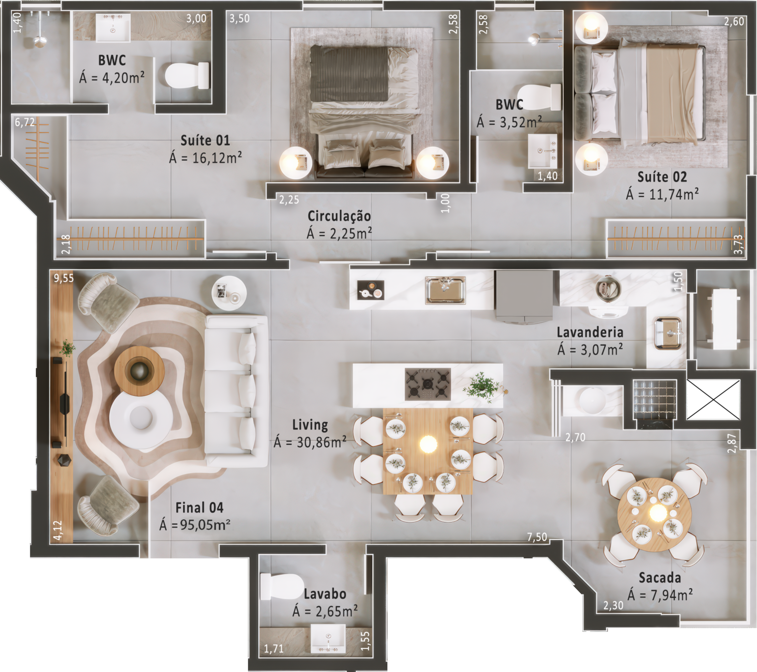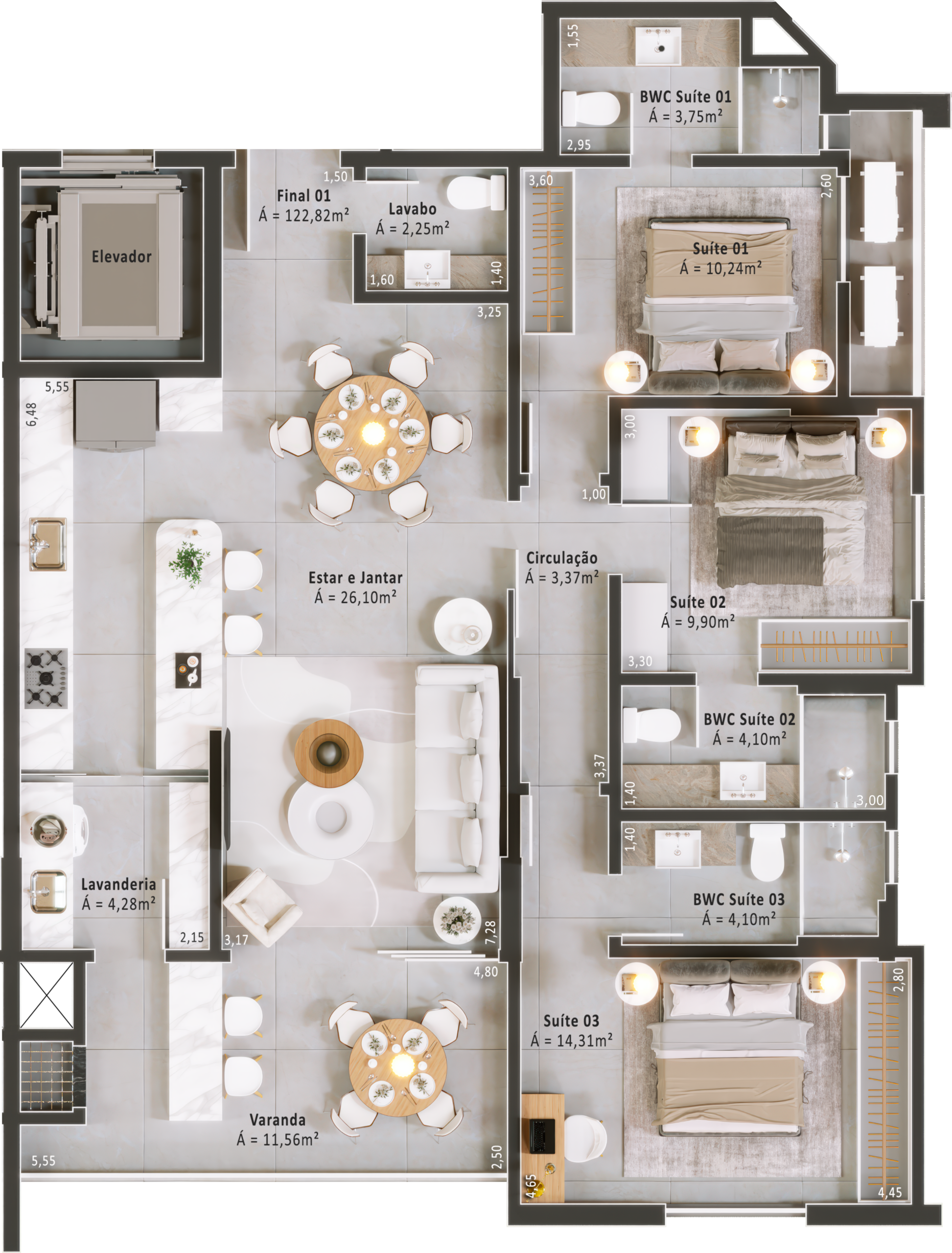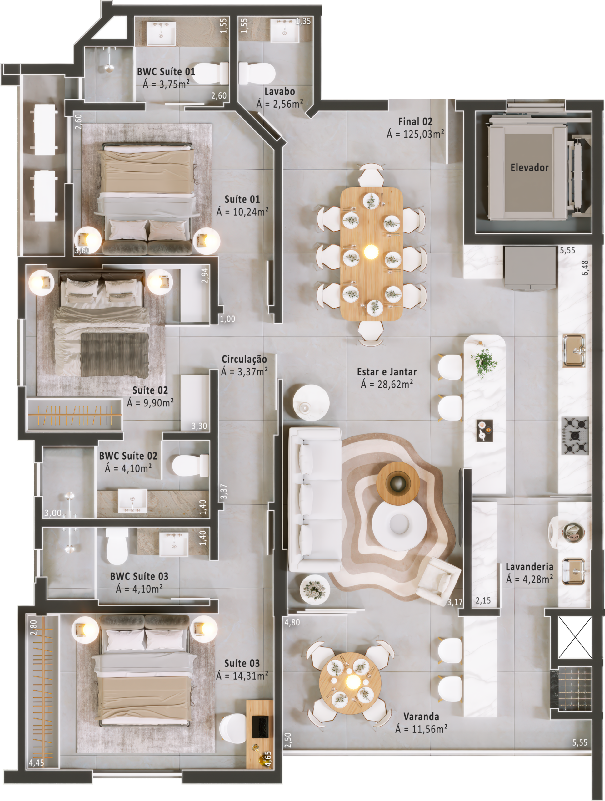 Áreas de lazer mobiliadas, decoradas e climatizadas